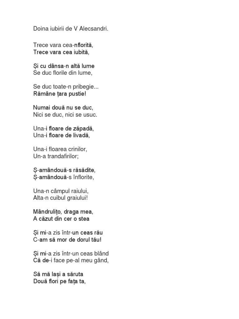 Doina Iubirii De V Alecsandri