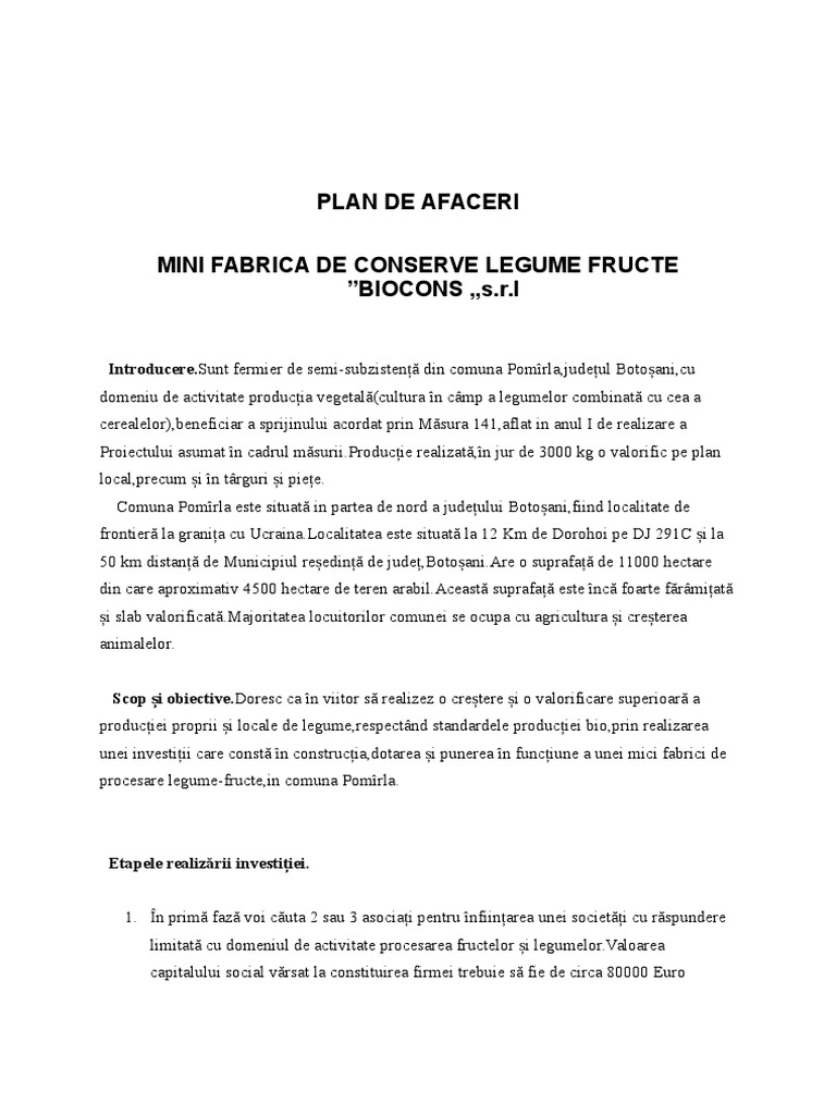 Plan De Afaceri Minifabrică Conserve Doc