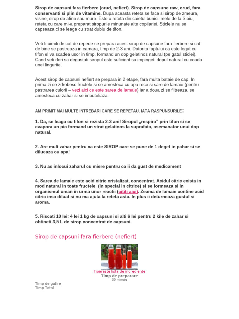 Sirop De Capsuni Fara Fierbere